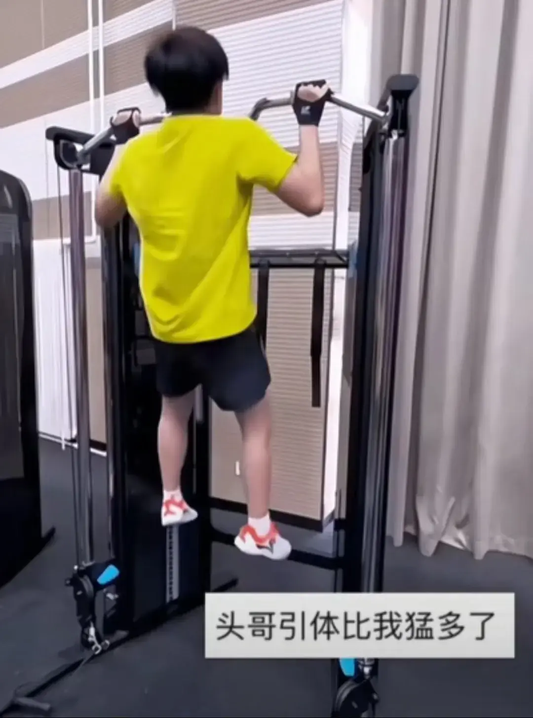 就这一句话,我刚刚在小红书就刷到了大头往日作念引体朝上的片断,如实挺猛的呢,他齐无谓体能老诚赞理,我方就能连气儿作念好几个。