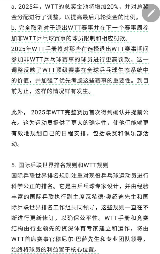 除此之外,WTT还好原理泄露不参赛就罚金的王法“并非最新出台”,而是“自四年前WTT诞生以来一直沿用于今”,而况示意该组织总奖金池将增多20%,并对总奖金分拨进行了调遣,但即便如斯,樊振东和陈梦王人不想和洽了,径直亮明气魄告示退出寰球排行,这证据他们的优惠递次根柢无法遮蔽解决的推行!