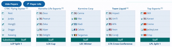 2025年3月3日进入首届公共前卫赛的五支戎行齐如故详情,分手是来自LPL赛区的TES、LCK赛区的HLE、LCP赛区的CFO、LTA赛区的TL、LEC赛区的KC。